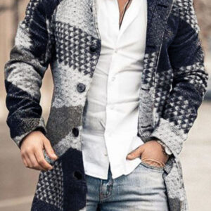 Men’s Mid-Length Cardigan Lapel Long Sleeve Knitted Jacket