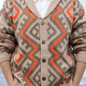 Men’s retro heavy-duty jacquard cardigan sweater autumn and winter lapel long-sleeved knitted jacket