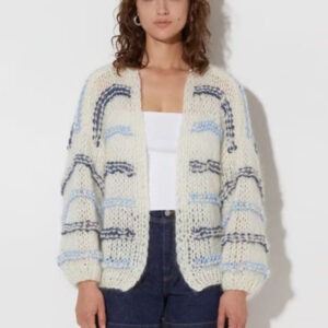 Designed to be niche, loose, fashionable and versatile, contrast striped lazy style knitted cardigan